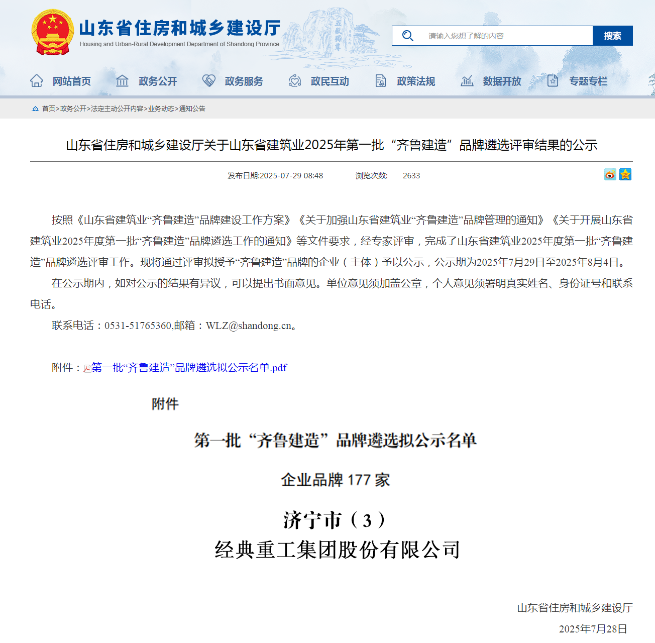 榮耀入選!經(jīng)典集團(tuán)榮登2025年第一批“齊魯建造”品牌榜